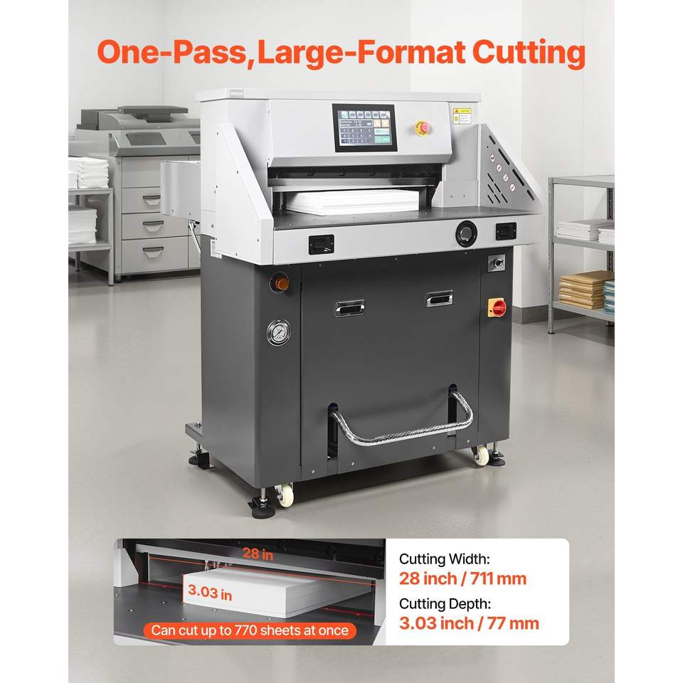 Cortadora de Papel Eléctrica de Gran Tamaño, Ancho de Corte de 28 Pulgadas, Grosor de Corte de 3.03 Pulgadas, Guillotina Hidráulica de Metal