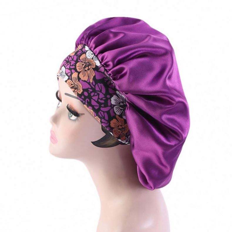 Gorro de satén con estampado floral de talla grande para el cuidado del cabello rizado de mujer, banda ancha, para viajes y playa, calidad de salón