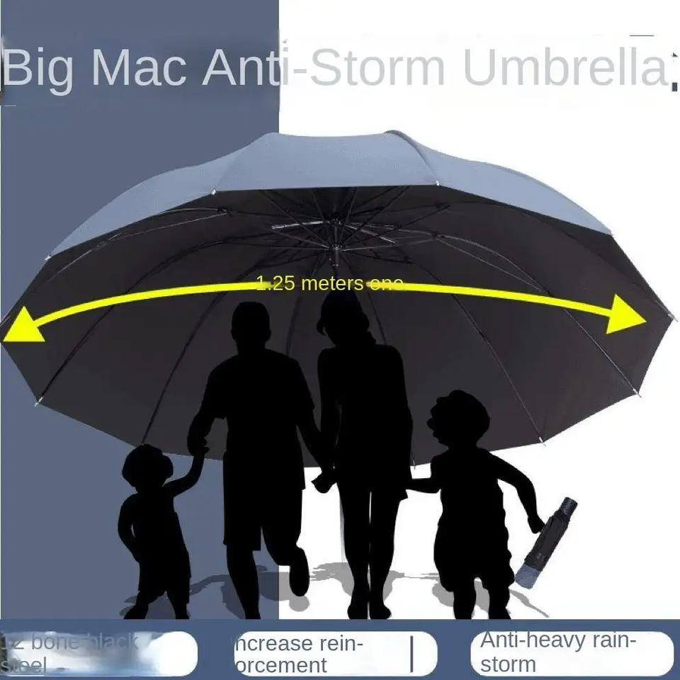 Paraguas de viaje plegable resistente al viento de gran tamaño para la familia, 125 cm, 128 cm, paraguas grande de 3 pliegues para tormentas de lluvia, para hombres