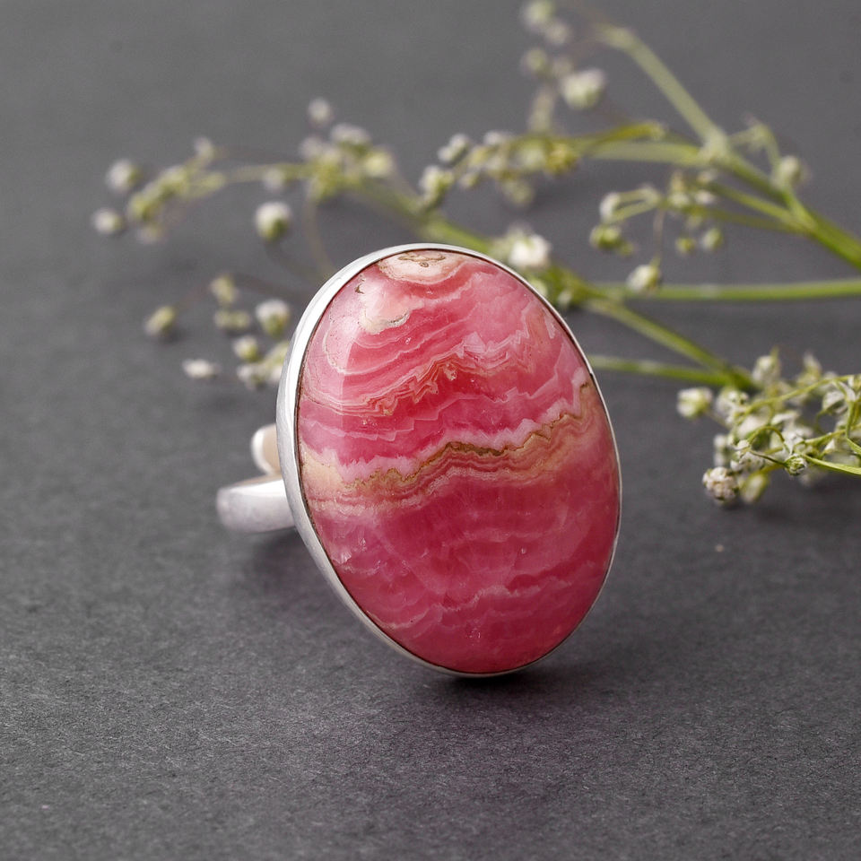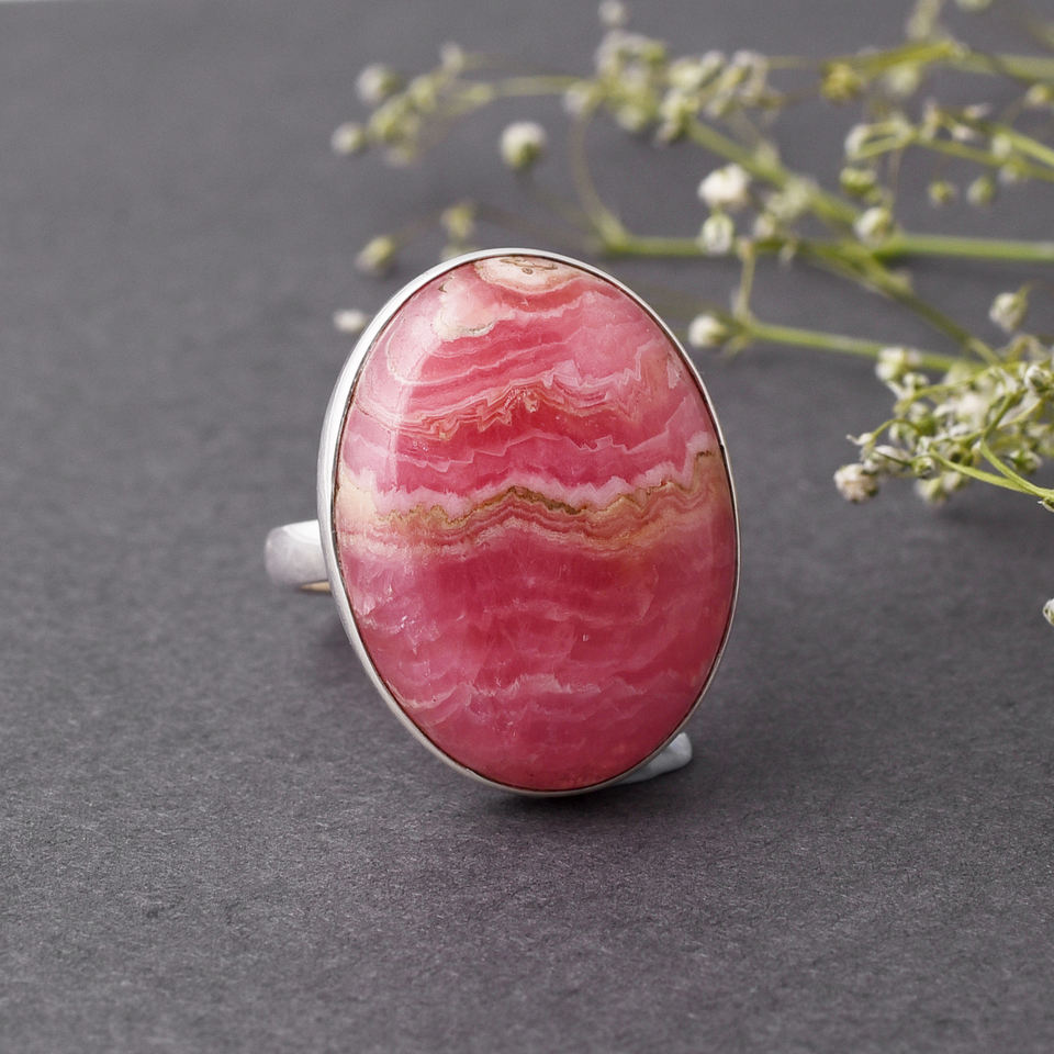 Anillo de grupo de piedras preciosas de Rodocrosita natural de gran tamaño, joyería con incrustaciones pavimentadas