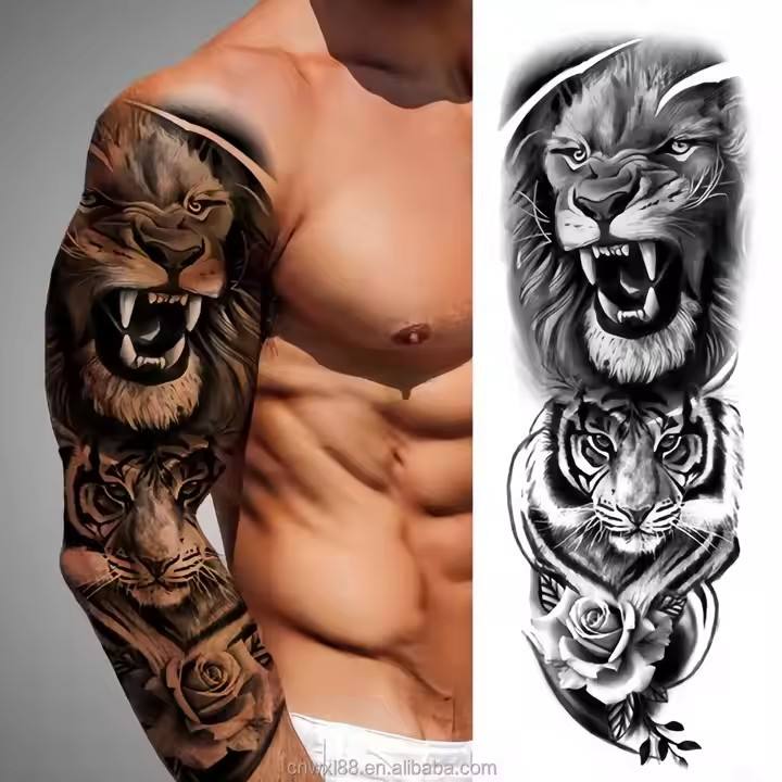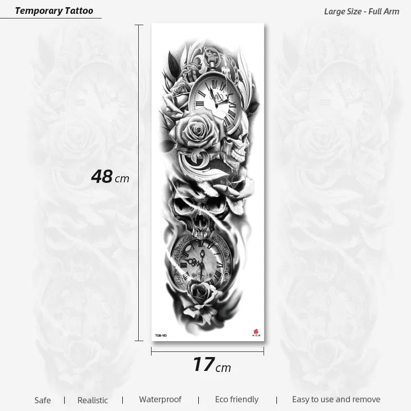 Tatuajes corporales temporales de manga larga para hombre, impermeables, de gran tamaño, pegatinas de tatuaje de brazo de larga duración, patrón rectangular de dibujos animados, Henna