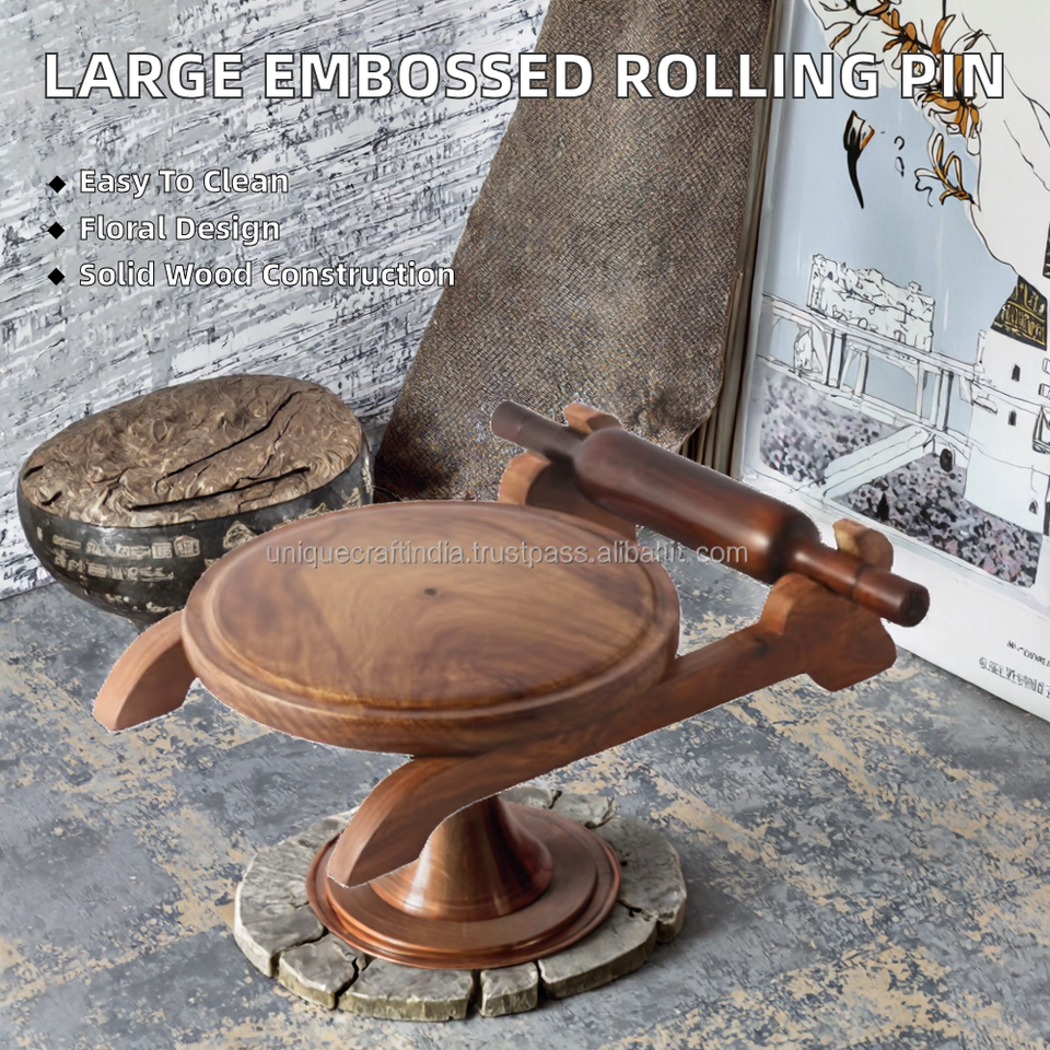 Rodillo de Masa de Madera con Diseño Floral de 35 cm, Antiadherente, Ecológico, para Repostería y Cocina