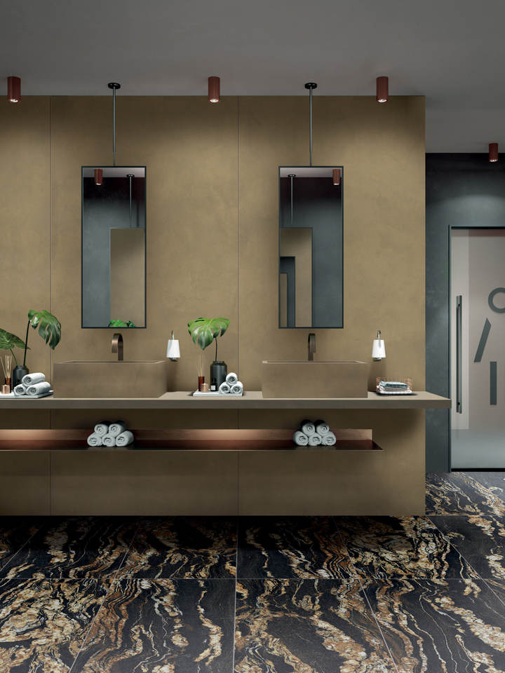 Baldosas Grandes de Gres con Efecto Mármol Negro Taurus, Acabado Natural LUX, 100% Hecho en Italia, 6mm de Grosor