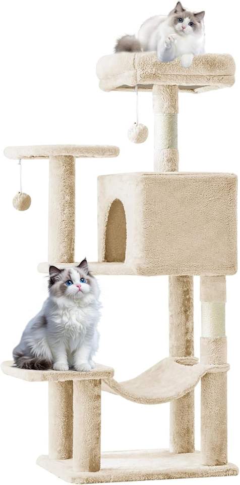 Árbol para Gatos Grande y Resistente con Postes Rascadores de Sisal Natural y Hamaca, Condominio Interior de 4 Niveles para Gatos