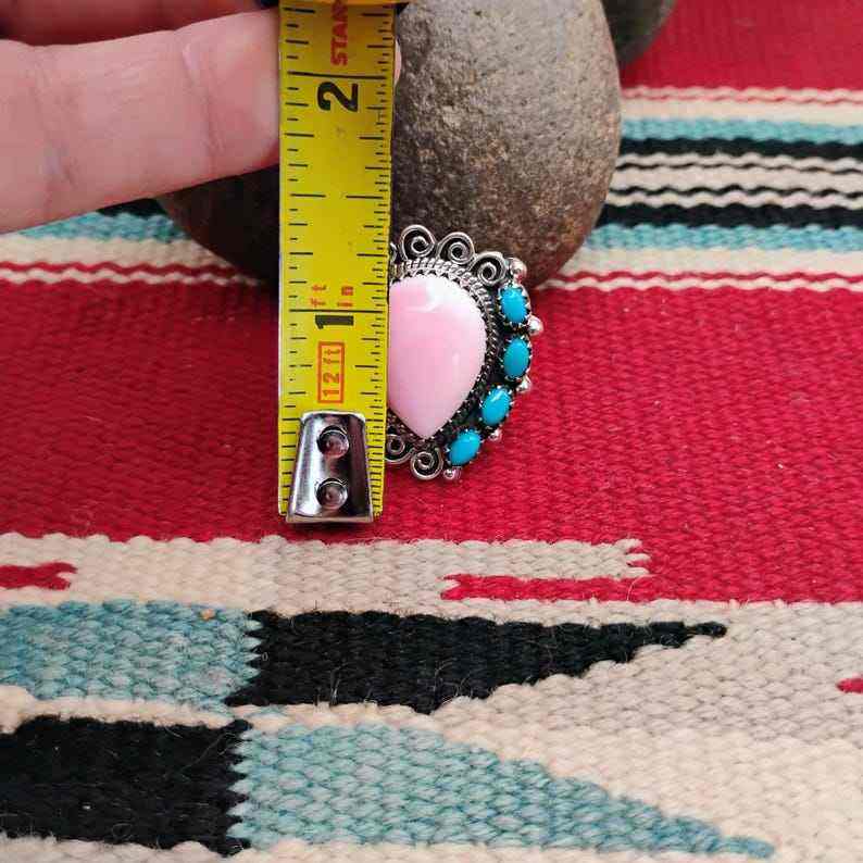 Gran Concha rosa del sudoeste y anillo de plata esterlina turquesa tamaño 10,5 joyería única
