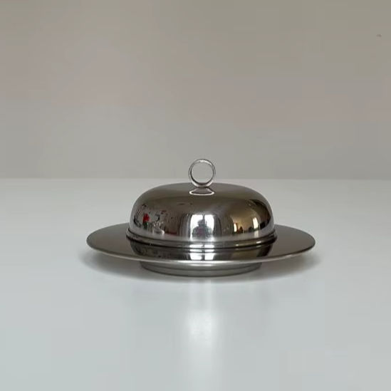 Plato de mantequilla grande de acero inoxidable con acabado liso diseñado para una fácil limpieza cocina comedor almacenamiento y uso de presentación