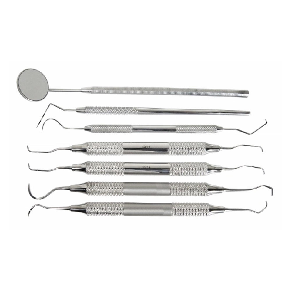 Kit de Profilaxis de Acero Inoxidable Grande, 7 Piezas, Instrumentos Dentales y Veterinarios Manuales para Limpieza Periodontal, Certificado CE