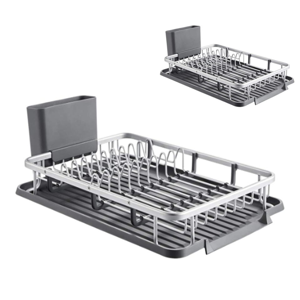Escurridor de vajilla de aluminio grande, estante de cocina, organizador, escurridor de platos
