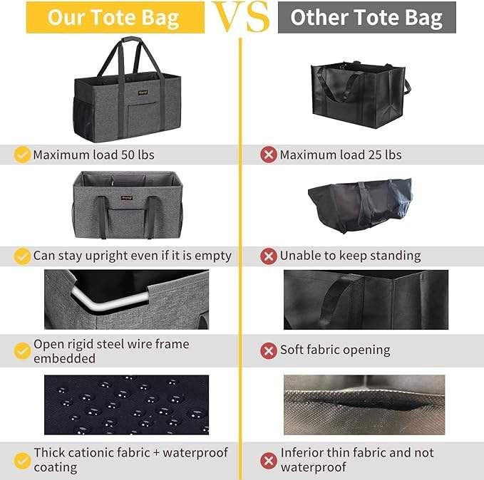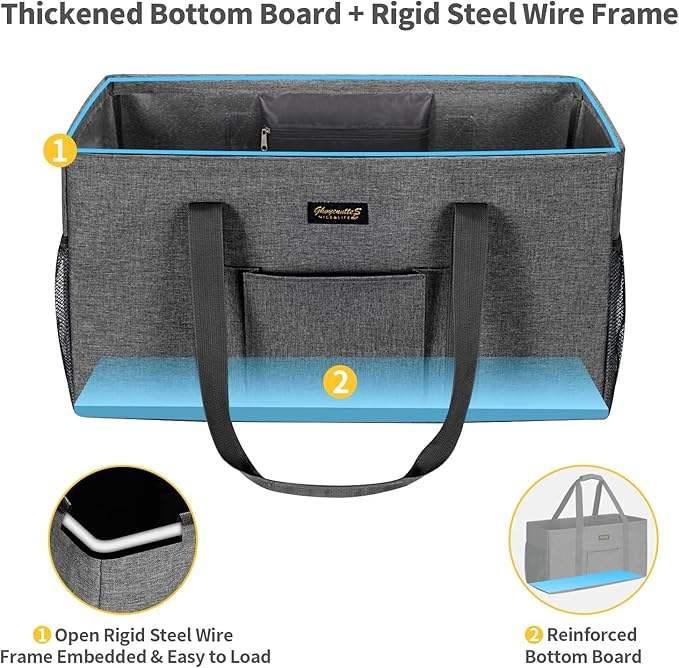 Tablero inferior de utilidad estructurado grande, bolso de mano de pie de utilidad, marco de alambre de Metal, asas de comestibles reutilizables, bolsas de playa extra grandes