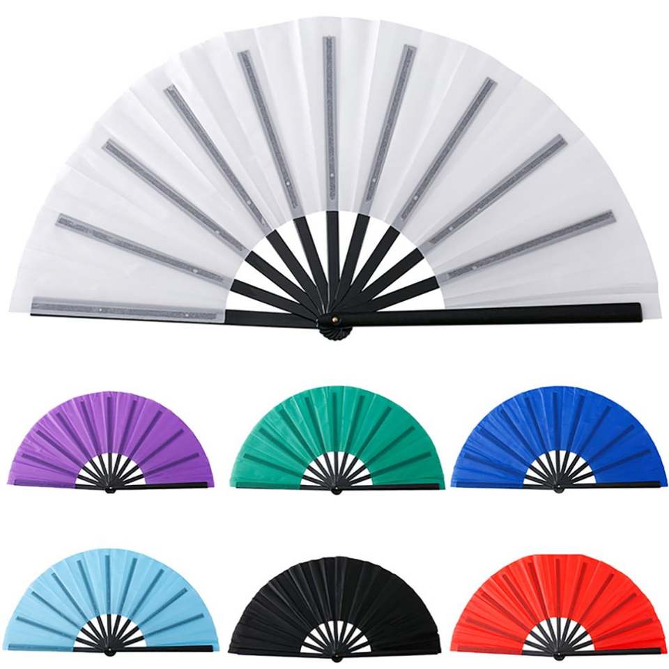 Ventilador de sublimación grande en blanco, ventilador de mano plegable de tela plástica de poliéster de 33CM