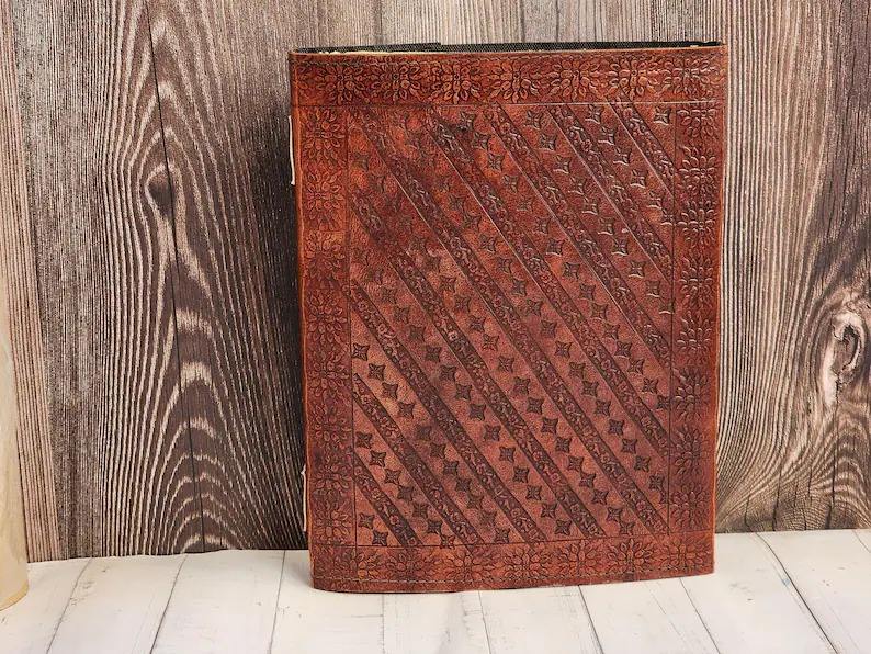 Diario de cuero en relieve de árbol grande Cuaderno de cuero hecho a mano Diario de Navidad Grimoire Libro de sombras Libro de invitados de boda