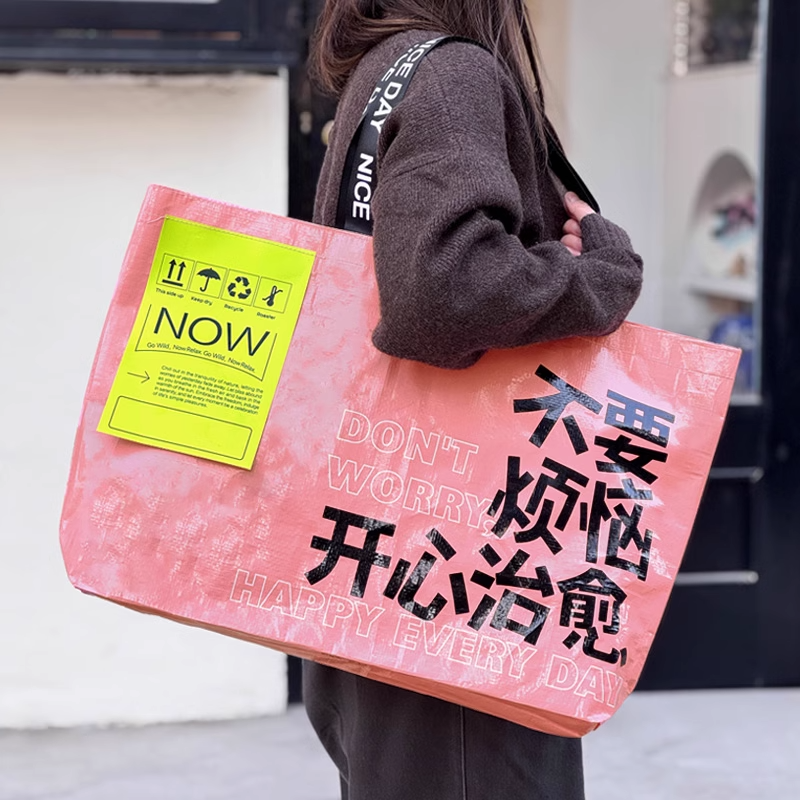 Bolsas de compras plegables lavables grandes Bolsas de asas tejidas de PP laminadas reciclables con asas reforzadas