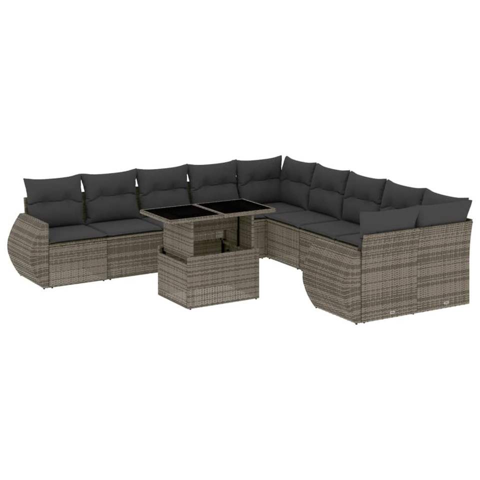 Conjunto de Sofás de Jardín de Mimbre Sintético Gris Resistente al Agua, Muebles de Jardín para Exteriores