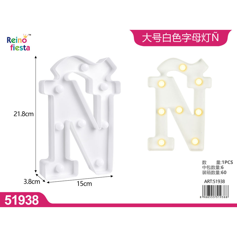 Letra del alfabeto N con luz LED blanca grande para decoración del hogar e iluminación de fiestas