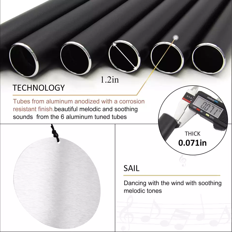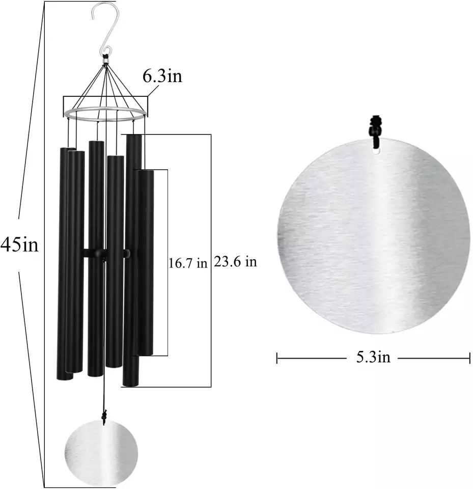 Carillones de viento grandes para exteriores, tono profundo, carillones de viento de 45 pulgadas con 6 tubos sintonizados, melodía relajante