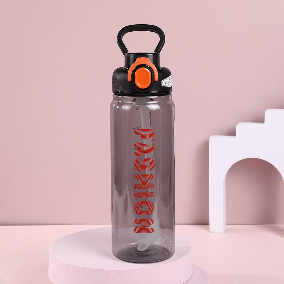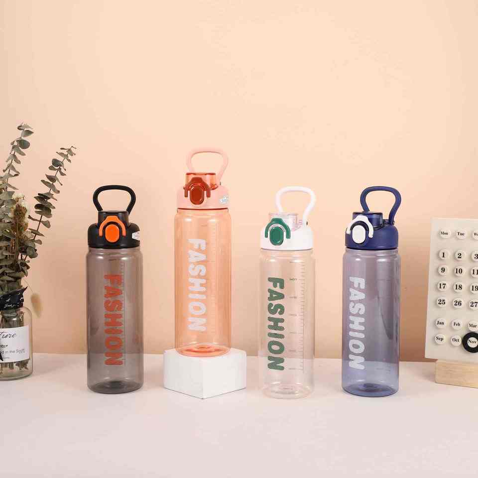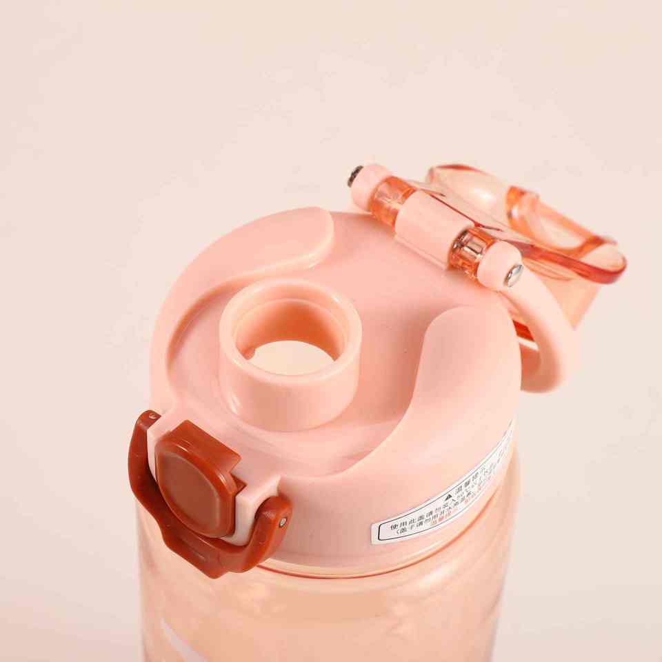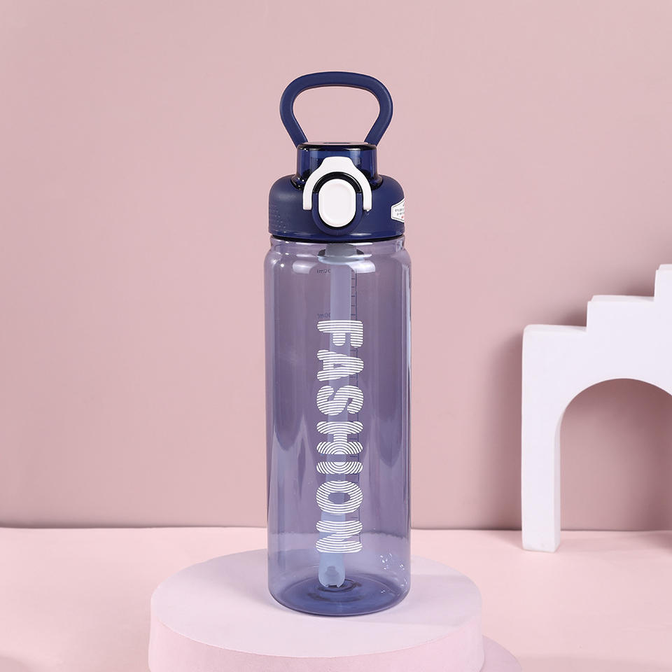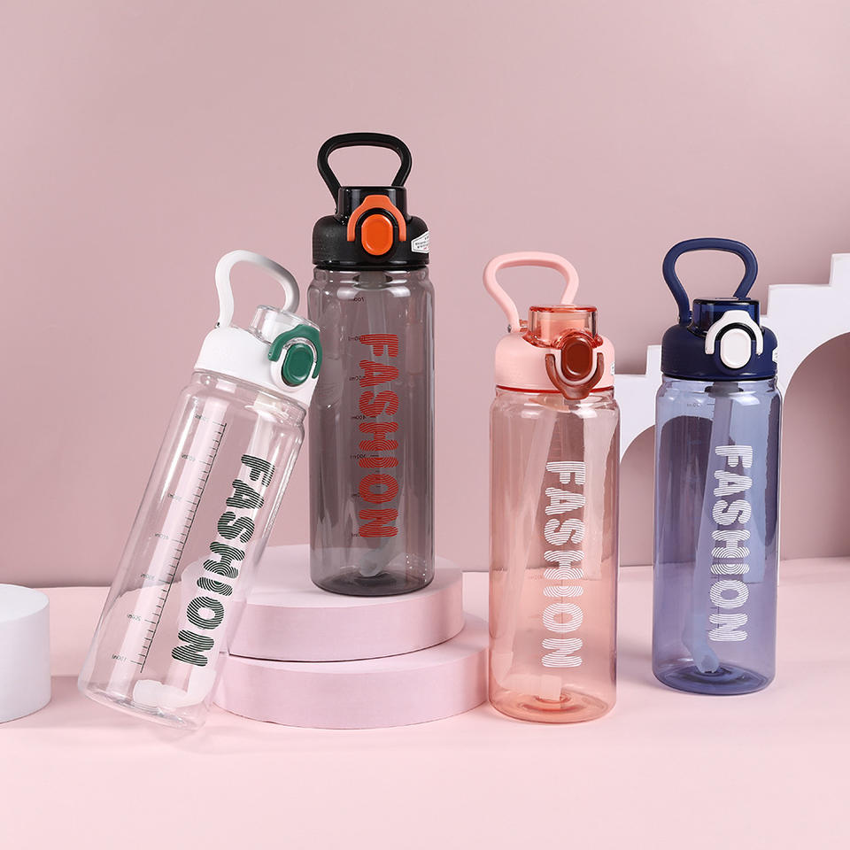 Botella de agua deportiva reutilizable de gran capacidad, segura para alimentos, impermeable, transparente, de color sólido, de plástico PC, para fitness, con un solo botón.