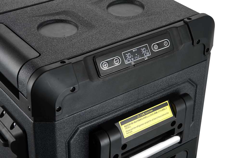 Refrigerador portátil de gran capacidad con doble temperatura y control, con ruedas y asa extraíble, compresor silencioso, diseño para exteriores.