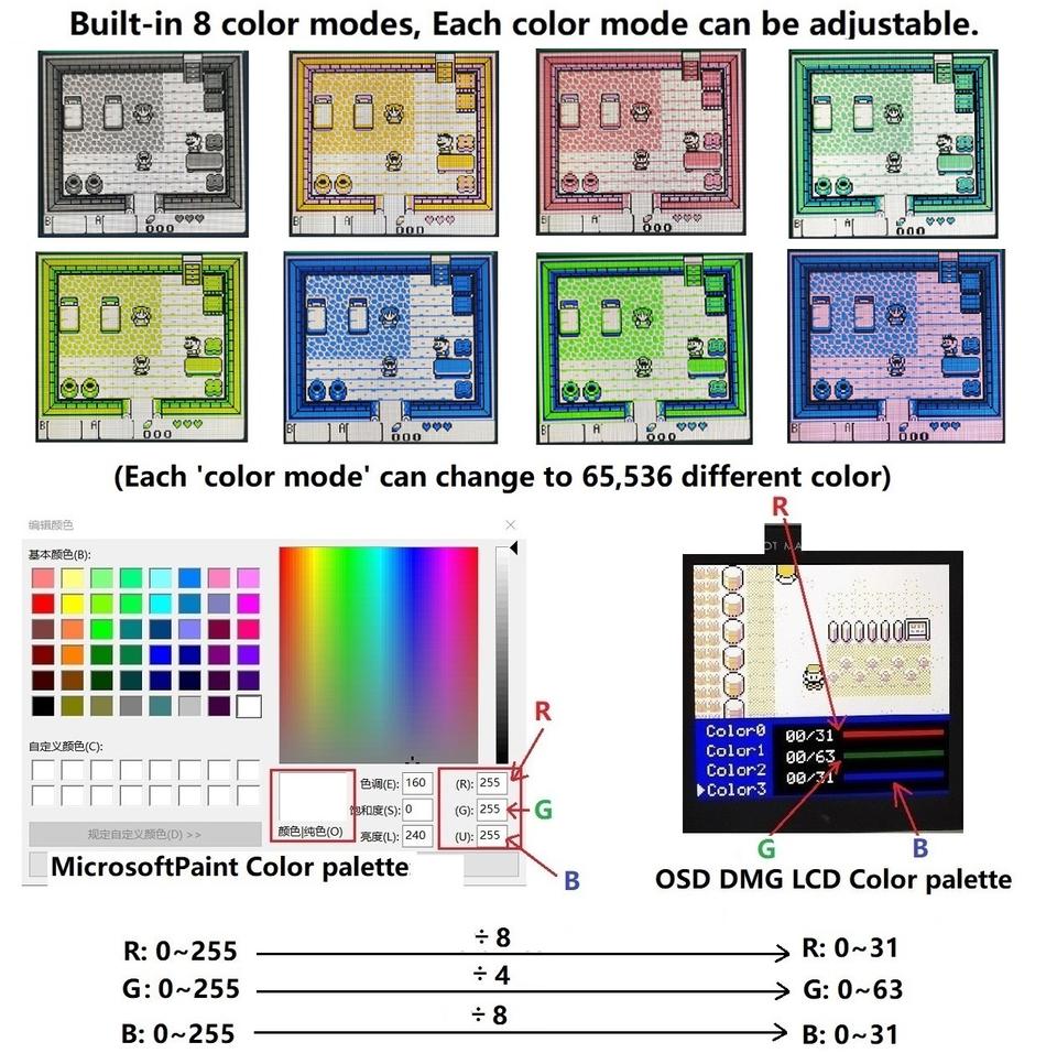 Área de visualización más grande DIY para Gameboy Color GBC Q5 OSD IPS pantalla LCD KIT de píxeles RETRO Pantalla de retroiluminación de Alta Luz