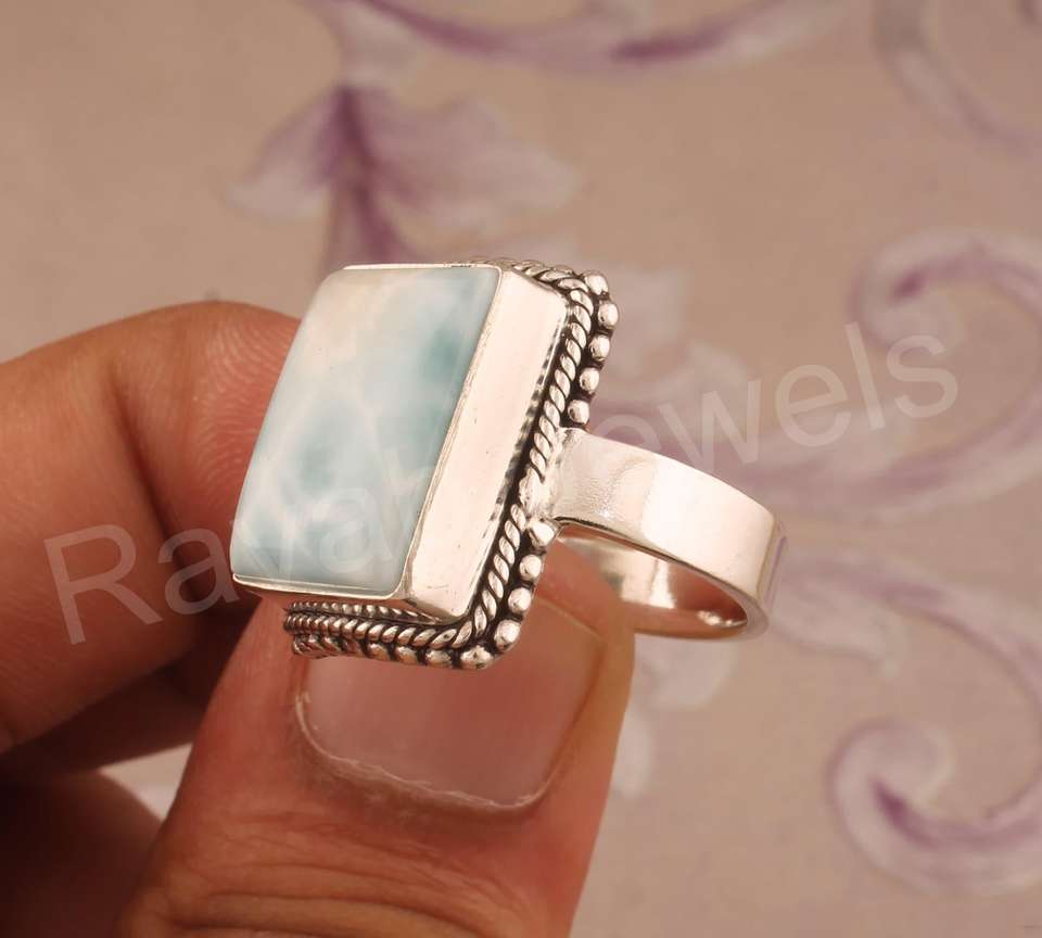 Nombre del producto:925 Sterling Silver Gemstone Larimar Turquoise Ring