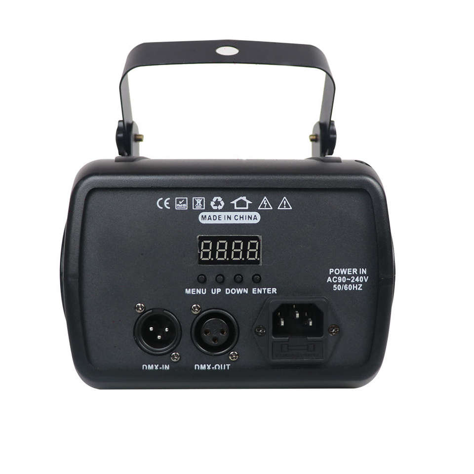 RGB Disco LED 3 en 1 Decoraciones de haz láser Patrón de lluvia doble Luces de escenario con control DMX512 Emisión de aluminio azul y blanco