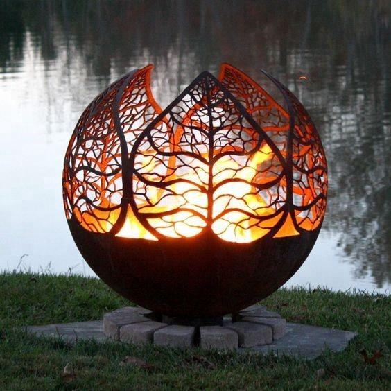 Esfera de Fuego Decorativa de Acero Corten, Cortada con Láser, con Patrones Personalizados, Rústica, Ecológica, Esfera Hueca de Metal