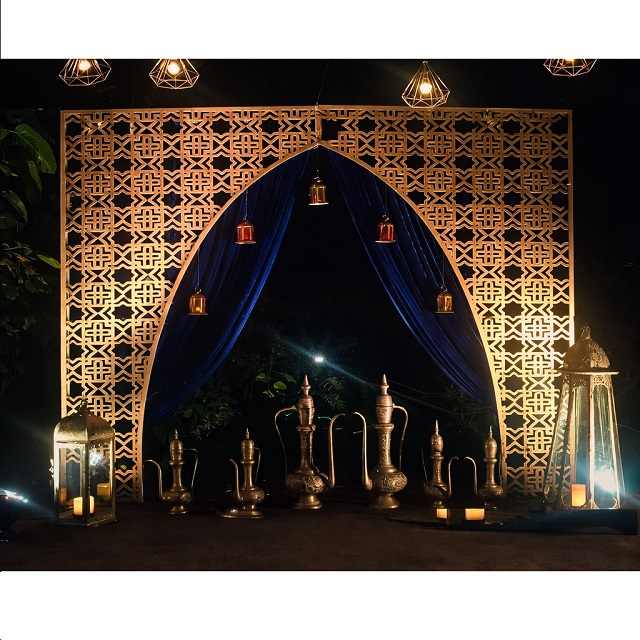 Panel de puerta cortado con láser para decoración de bodas, marco de puerta con temática marroquí, decoración para bodas, escenario para eventos con temática de Marruecos Glorioso, Houston