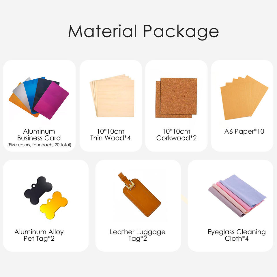 Paquete de Materiales para Grabado Láser Laserpecker, Contiene Siete Materiales Diferentes, Ideal para Grabador L2