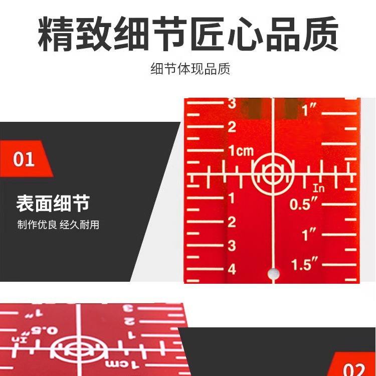 Tablero de objetivo para nivelador láser, rojo y verde, con escala y reflector magnético para nivelación de techos 111