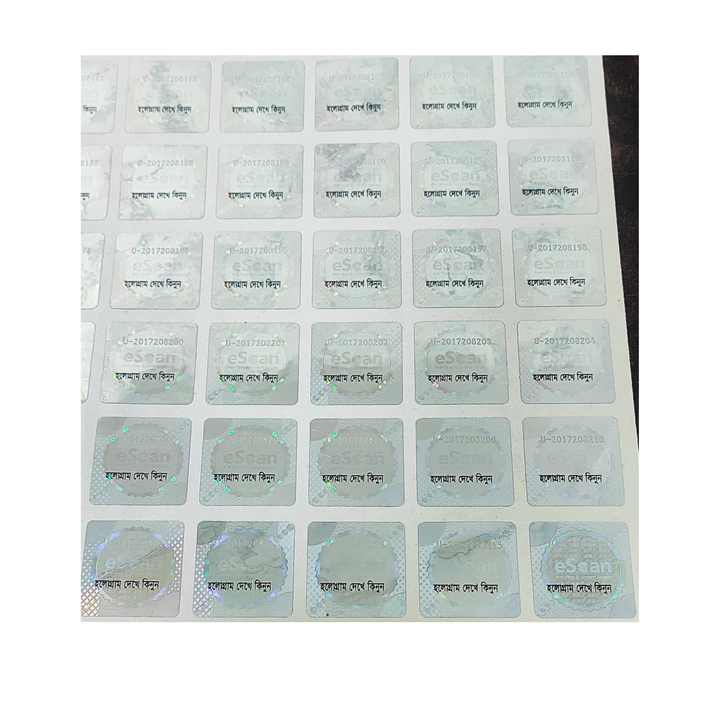Etiquetas Adhesivas de Papel Impresas Personalizadas con Números Láser, Color Plateado Holográfico, para Embalaje