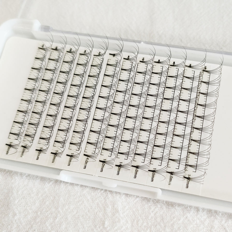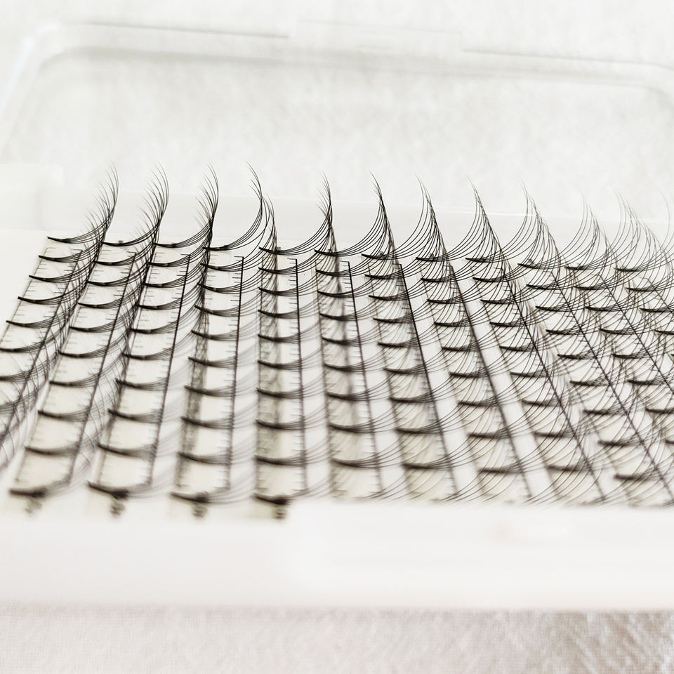 Abanico de pestañas de Corea prefabricadas, volumen ruso, súper ventiladores, punta de aguja, Base estrecha, ligero, Mega prefabricadas