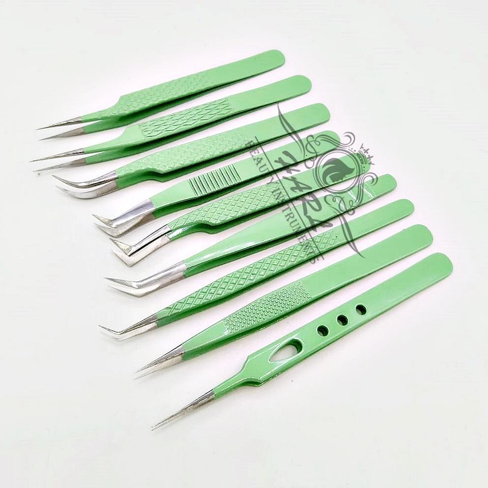 Suministros para pestañas Pinzas de extensión de pestañas de acero inoxidable antimagnéticas con punta puntiaguda de Color verde claro para uso de pestañas