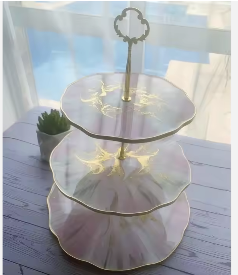 Soporte de pastel de resina de diseño Laster redondo y 2 neumáticos estilo servir resina blanca soporte de postre de pastel hecho a mano y decoración del hogar