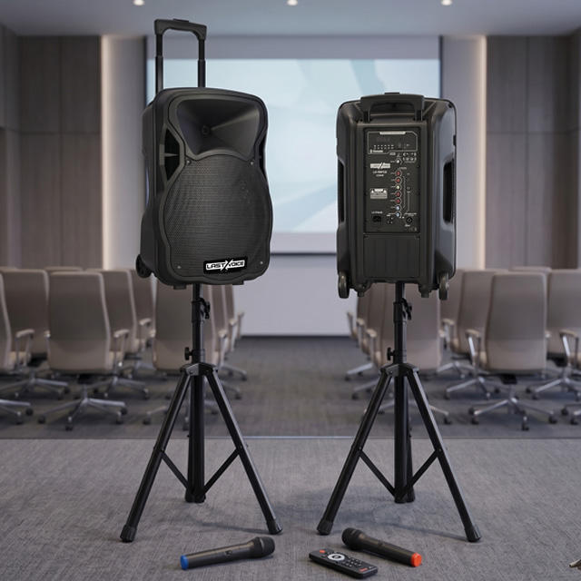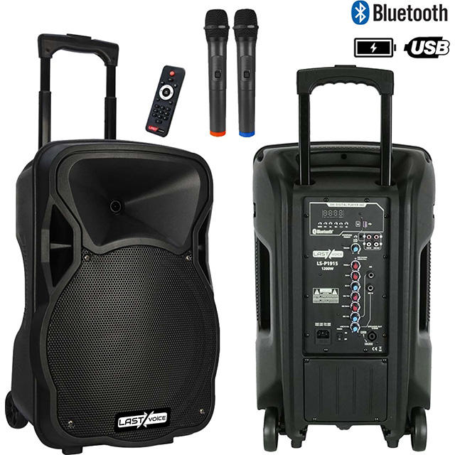 Sistema de Sonido Portátil PA Lastvoice LS-P1915EE-ST de 15 Pulgadas y 1200W con Micrófono y Soporte para Batería V4.2 de 5000-8000mAh