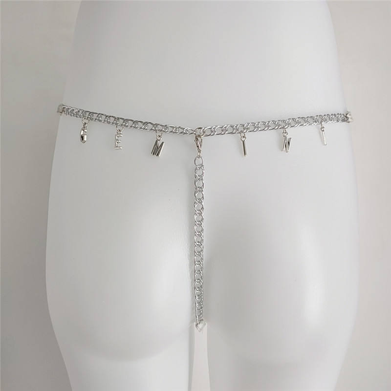 Horóscopo de cadena para el vientre para mujer, Bikini Sexy con cristales brillantes y letras, cadena en T, cadenas de cintura, Tanga, 12