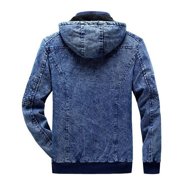 Últimas 2025 Chaquetas de hombre de alta calidad Diseños de logotipo personalizado Chaqueta de mezclilla de invierno Chaqueta de mezclilla con capucha de lana azul para hombres con OEM
