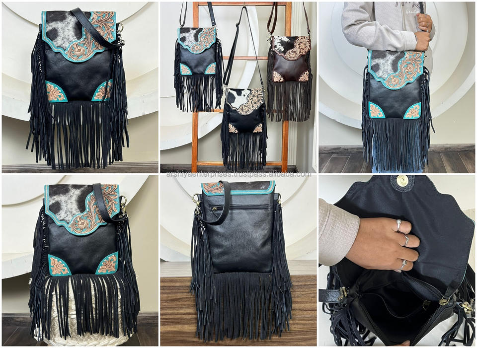 Nombre del producto:Bolso bandolera de cuero repujado con flecos