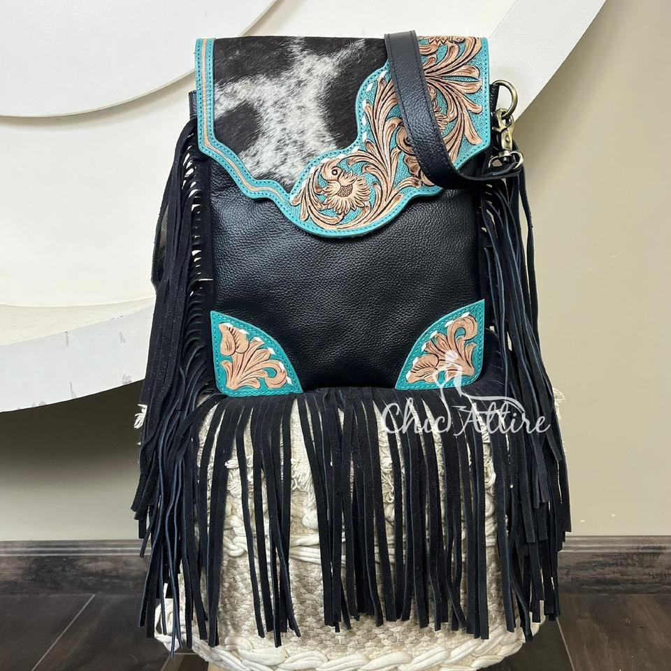 Nombre del producto:Bolso bandolera de cuero repujado con flecos
