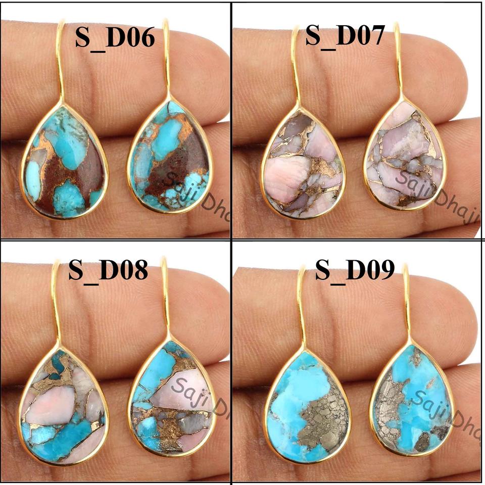 Nombre del producto:Pendientes chapados en oro de plata de piedras preciosas naturales