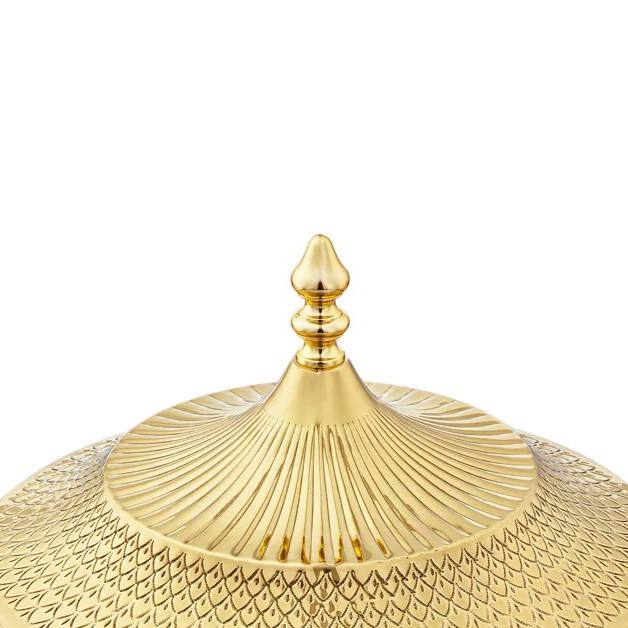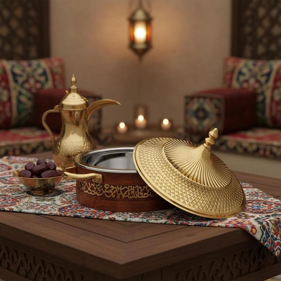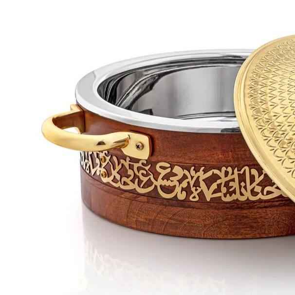 Product name:Luxury Arabic Serving Dish With Lid Golden Finish Wooden Casserole