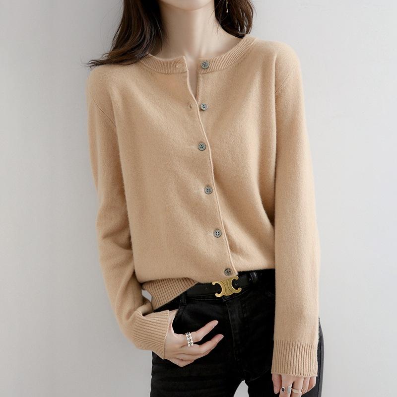 Lo último en suéter de mujer de camello de punto con un solo pecho y cuello cárdigan de Color sólido antipilling para uso diario