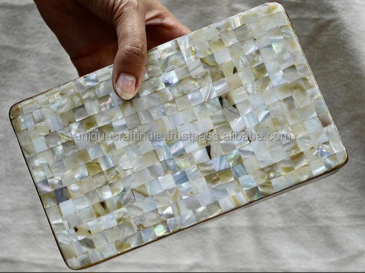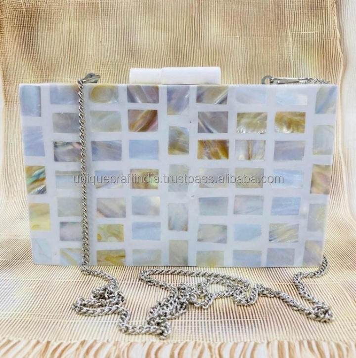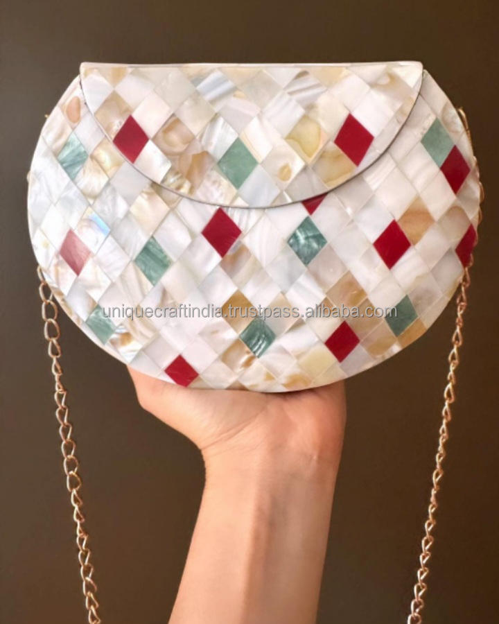 Bolso Bandolera Rectangular Ajustable con Incrustaciones de MOP, Última Llegada | Bolso de Diseño Artesanal con Mosaico de Conchas y Resina para los Amantes de la Moda