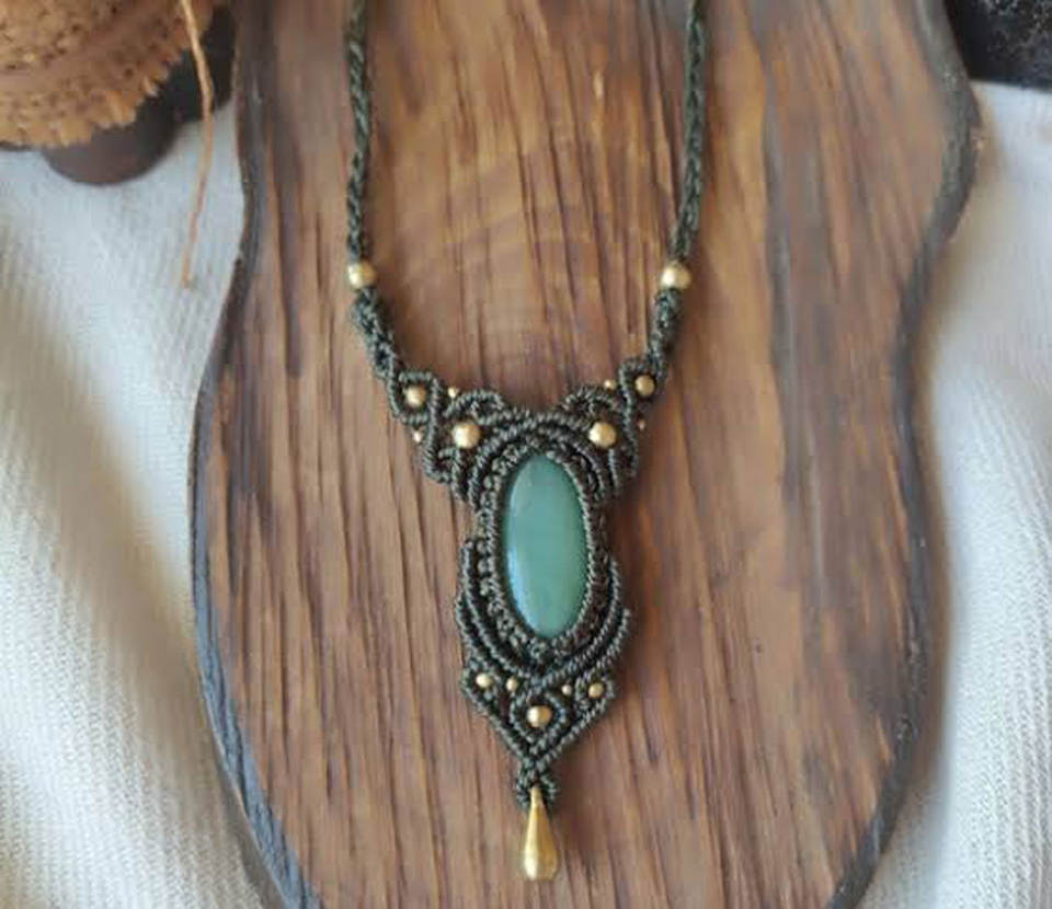 Collar de Macramé con Cadenas Plateadas, Hecho a Mano, con Bisel Ovalado de 20 a 30 mm, Colgante de Regalo, Joyería