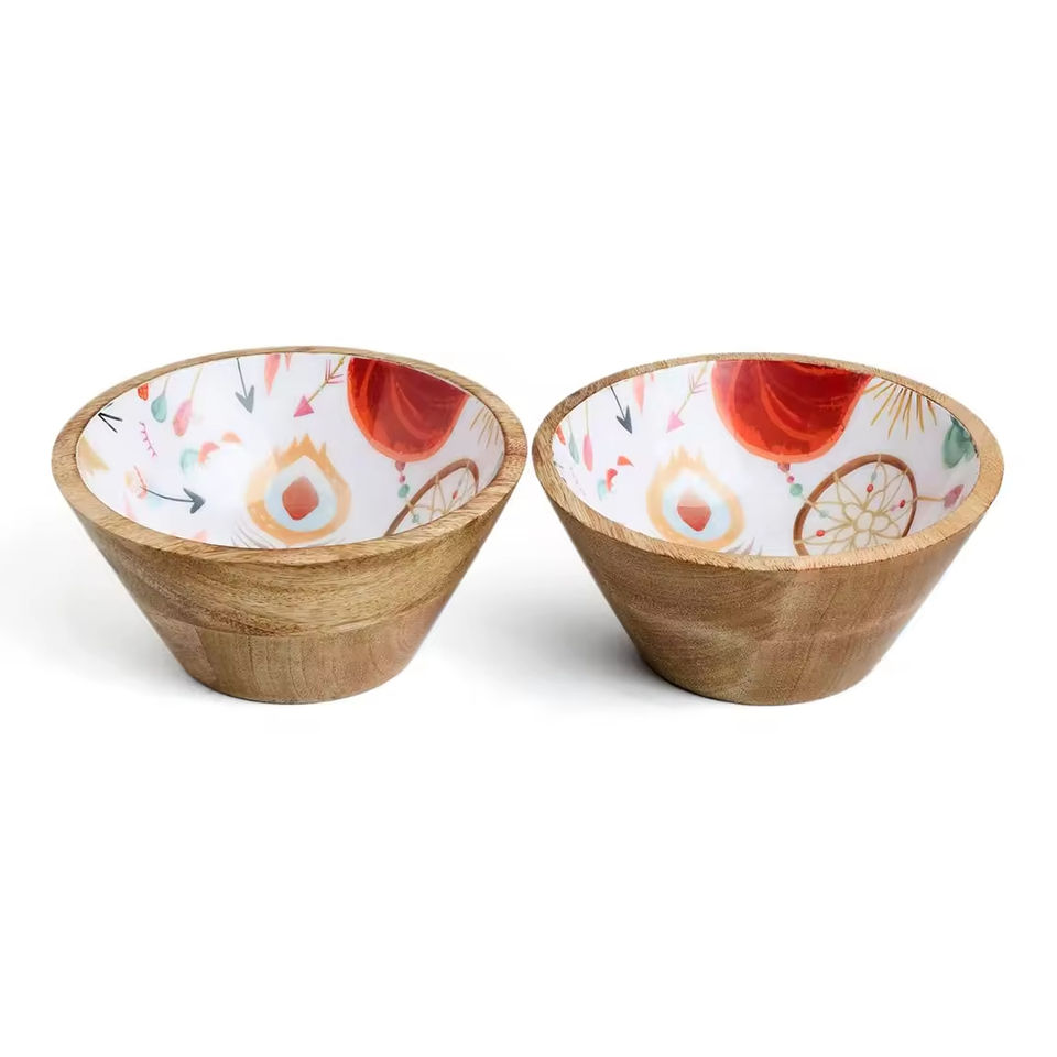 Cuenco de madera con estampado de esmalte redondeado, cuenco moderno y elegante para servir sopa con cuchara, decorativo para boda