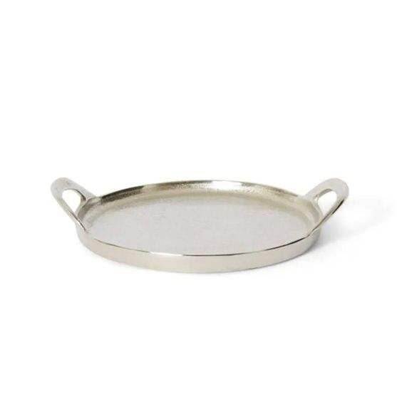 Bandeja de Servicio de Frutas y Alimentos de Color Plateado Brillante, Apta para Lavavajillas, Hecha a Mano, Vajilla de Metal para Eventos y Festivales