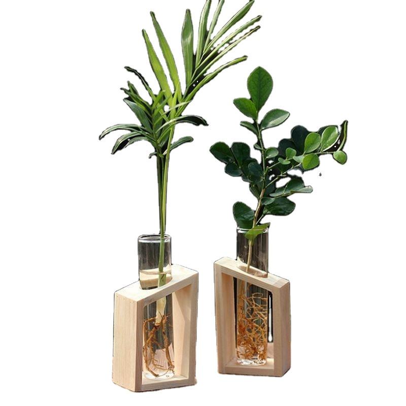 Nombre del producto:Jarrón de madera con tubo de cristal
