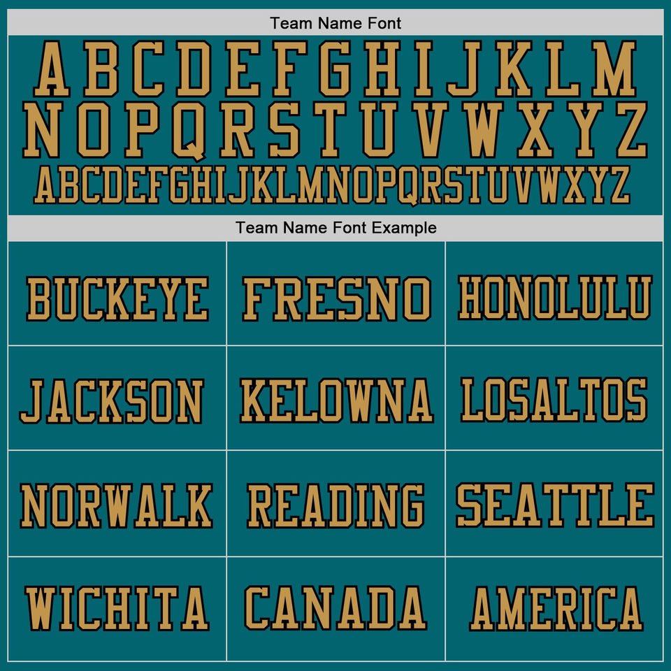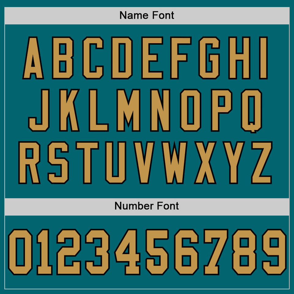 Último Modelo de Camiseta de Fútbol Americano Retro Auténtica en Color Verde Azulado, Dorado Antiguo y Negro, con Malla Transpirable, Personalizable con Nombre y Número