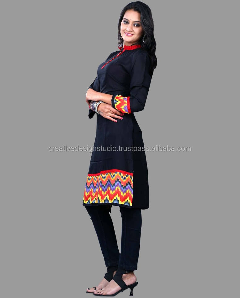 Lo último en ropa paquistaní India informal larga con estampado Digital hermoso, Kurtis inteligente de algodón negro para mujer para adultos, diseños étnicos
