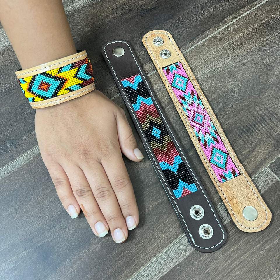 Product name:Hand Tooled Genuine Leather Beaded Cuff Bracelet