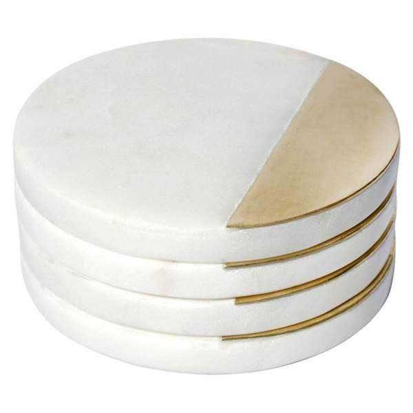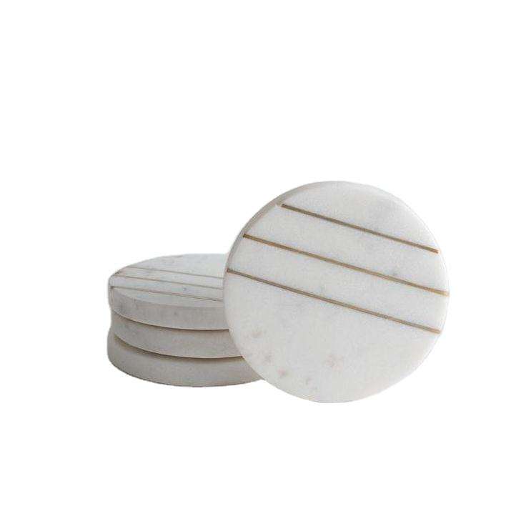 Posavasos de Mármol con Incrustaciones de Latón, Hechos a Mano, Juego de Posavasos Decorativos para Bebidas, Proveedor de Artículos de Mesa