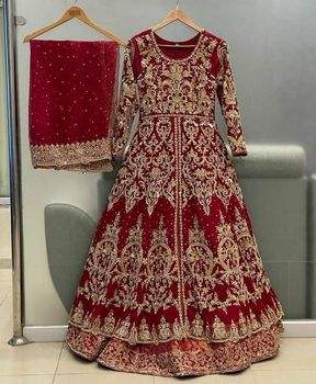 ATIYA LIBAS nupcial Lehenga Choli con cuentas de cristal y adornos de piedra Material de acetato bordado Dabka para mujer